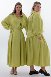 "Костюм со съемным декором Kivvi Wear — Элегантность в Движении Kivvi Wear представляет идеальный дуэт, где современный шик встречается с непревзойденным комфортом. Блуза свободного кроя и удлиненная юбка-трапеция — это воплощение утонченной эстетики и свободы самовыражения. Каждая деталь этого ансамбля продумана для создания гармоничного и целостного образа. Блуза прямого силуэта с отложным воротником и глубоким вырезом служит идеальной основой. Широкие рукава со сборкой на манжетах мягко ниспадают, добавляя пластичности и легкости каждому движению. Уникальность модели подчеркивают съемные декоративные цветы из основной ткани: разместите их на груди или рукавах, чтобы придать образу романтичность, или уберите для создания лаконичного строгого образа. Юбка-трапеция с аккуратными встречными складками по переду и спинке визуально вытягивает силуэт, подчеркивая его изящество и легкость. Скрытые складки создают мягкий объем, который красиво колышется при ходьбе, даря ощущение невесомости и утонченности. Обе вещи гарантируют комфорт в течение всего дня. Этот костюм — готовое решение для тех, кто ценит универсальность и стиль: носите его как цельный ансамбль для особых случаев или комбинируйте вещи отдельно с другими элементами гардероба."