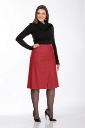 Юбка из экокожи А-силуэт со складками и карманами Klever 299 красный