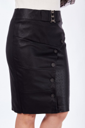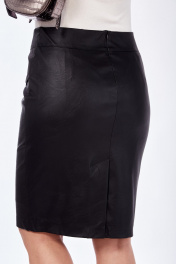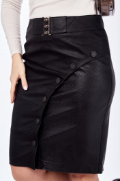 Черная юбка из экокожи с имитацией пряжки и шлицей Klever 425/1 черный_кожа
