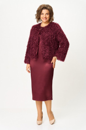 Нарядный женский комплект, состоящий из платья и жакета на подкладке. Платье из атласа с матовым блеском, с добавлением шелка. Удлиненное, полуприлегающего силуэта, вырез горловины круглый с застежкой на потайную молнию по спинке и высокой шлицей, без рукава, линия плеча слегка опущена. Жакет на подкладке, из ткани с имитацией ворса, что придает особенный шик и нарядность, вырез горловины круглый с застежкой на кнопку и декоративной брошью. Рукав длинный.