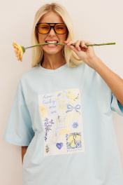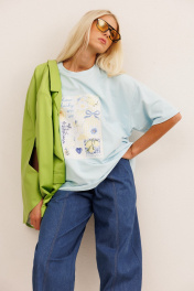 Джемпер: - свободный oversize силуэт - рукав до локтя - планка по горловине - дизайнерская печать спереди