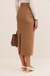 Юбка: - прилегающий силуэт - классичесская, удлинённая - притачной пояс - застёжка на потайную молнию и пуговицу - средний шов со разрезом по спинке
