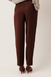Брюки из поливискозной ткани: – слегка зауженный к низу – узкий пояс, застёжка на молнию и пуговицу – по переду — складки и карманы с наклонным входом – универсальный вариант для офиса и повседневной носки