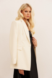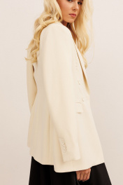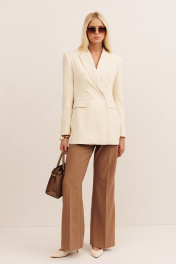 Жакет: - полуприлегающий силуэт - боковые карманы с клапанами - двубортная застёжка на пуговицы - воротник пиджачного типа - рельефы по спинке - на подкладке