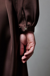 Прямое платье длиной в пол. Застежка по спинке на петлю-пуговицу. Эффектное платье простого силуэта. В комплекте идет пояс, которым можно подчеркнуть линию талии завязав его на спинке. Длина платья - 129 см.