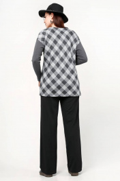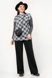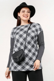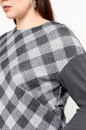 Джемпер в клетку свободного силуэта из трикотажа в лапшу La rouge 3229 серый-(клетка)