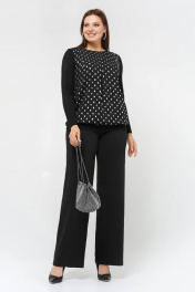 Джемпер свободного силуэта из вискозы с поясом и серебристыми вставками La rouge 3296 черный-(серебро)