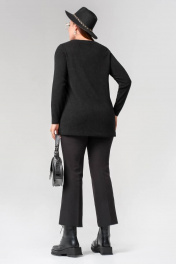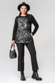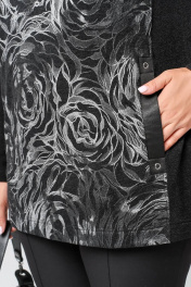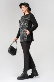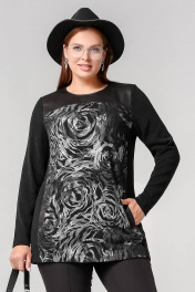 Длинный прямой джемпер с кожзама, ангорой и карманами La rouge 3321 черный-(розы)