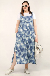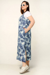 Сарафан трапециевидный с разрезами и объемными бретелями La rouge 5387 синий-набивной