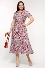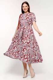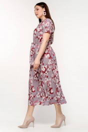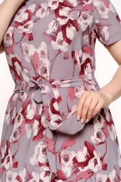 Платье свободного силуэта из стрейч-шифона с поясом и складками La rouge 5401 орхидея-(цветы)