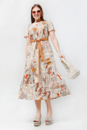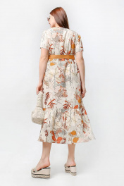 Платье из набивной вискозы с воланом и съёмным поясом La rouge 5427 беж-набивной