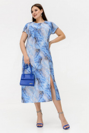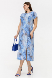 Платье реглан из штапеля с разрезом и застежкой La rouge 5462 голубой-набивной