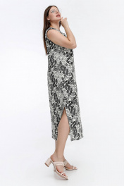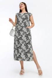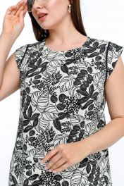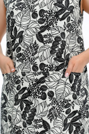Летнее платье трапециевидного силуэта с контрастной окантовкой La rouge 5470 бежево-черный-(цветы)