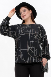 Блуза свободного силуэта из вискозы, черный, демисезон La rouge 6282 черный-(геометрия)