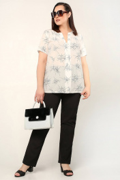 Блуза прямого силуэта с коротким рукавом и V-вырезом La rouge 6290 белый-набивной