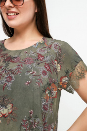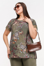 Прямого силуэта с нагрудными вытачками и разрезами в боковых швах. Рукав-реглан дополнен кружевом по низу. Ткань - набивной штапель. Рост 170.