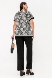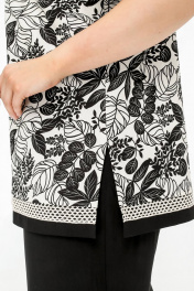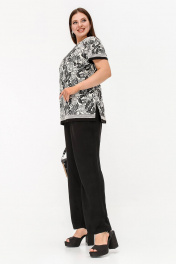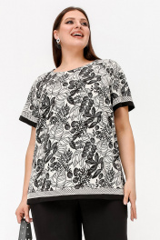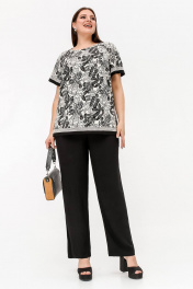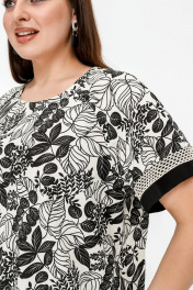 Нарядная летняя блузка с вышивкой и разрезами из текстиля La rouge 6297 бежево-черный-(цветы)