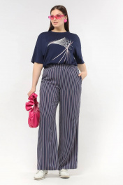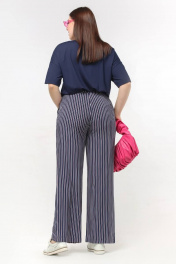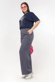 Вискозные брюки с высокой посадкой и карманами La rouge 8039 синий-(полоска)