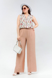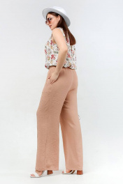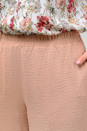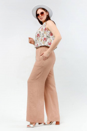 Бежевые однотонные брюки палаццо идеально подойдут как для офиса, так и для прогулки. Брюки расширенного к низу силуэта цвета кэмел с высокой посадкой и комфортным поясом на резинке. Классические женские прямые брюки с широкой резинкой по талии. Выполнены из высококачественного эластичного текстиля с эффектом мятости. Рост 170.