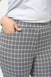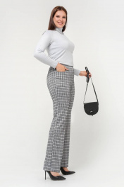 Базовые женские брюки-клеш. Клешные женские штаны с высокой посадкой и поясом на резинке. Линия входа в карман фигурная. Элегантные клетчатые брюки подчеркнут стройность ног и сделают их визуально длиннее. Выполнены из трикотажного полотна в клетку. Рост 170.