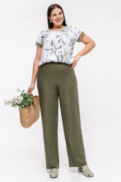 Женские летние брюки из вискозы с поясом на резинке La rouge 8056 хаки