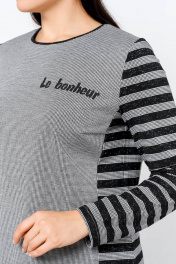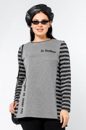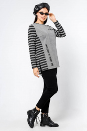 Туника прямого силуэта из трикотажа и полотна с печатями La rouge 90012 серый-(гусиная-лапка)
