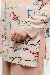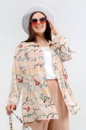 Туника свободного силуэта с принтом букв и застежкой La rouge 9072 беж-(буквы) - фото 1