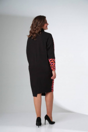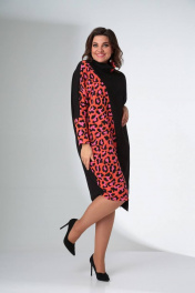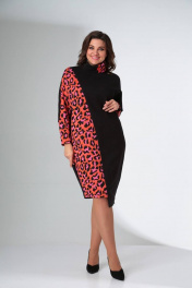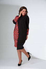 Платье свободного силуэта с воротником хомут и рукавом цельнокроеным LadisLine 1422 розовый_леопард+черный