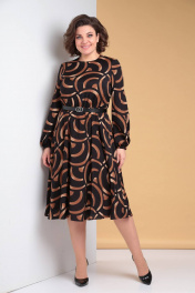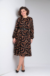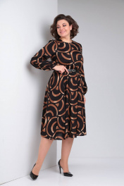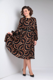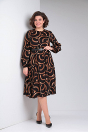 Платье свободного силуэта с принтом и капельным вырезом LadisLine 1485 черный-бронза