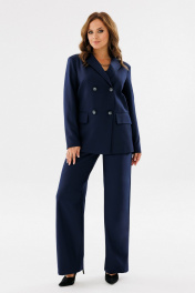 Деловой костюм бант и карманы с прорезными деталями LadisLine 1513 темно-синий