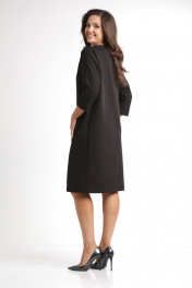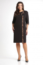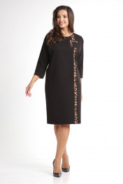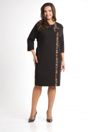 Комфортное повседневное платье с короткими рукавами и вставками из отделочной ткани LadisLine 1525 черный-лео