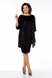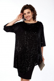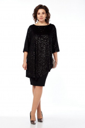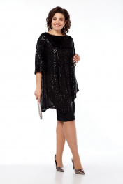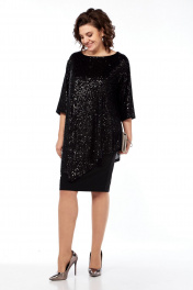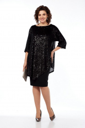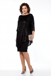 Демисезонный нарядный комплект из пайеток, туники и юбки-карандаша LadisLine 1549 черный