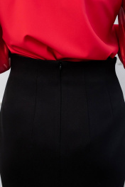 Классическая, облегающая юбка- карандаш с завышенной талией. Застежка - потайная молния в среднем шве задней части юбки. Для комфорта во время движения сзади юбки шлица. По переду два рельефа они являются и боковыми, что дает хорошее облегание на фигуре. На задней части вытачки. Верх юбки обработан обтачкой. Качественная ткань имеет рубчик, немного тянется, но при этом сохраняет форму. Юбка на подкладке со стрейчем. Длина чуть ниже колена. Хороший вариант для любого случая. Особенно выигрышно смотрится в сочетании с коротким топом либо заправленной внутрь блузкой или рубашкой.. Длина по заднему шву 44 размер -65см 46размер-66см 48размер-67см 50размер-69см обхват талии 44размер-72см 46размер-76см 48размер-80 50размер-84см