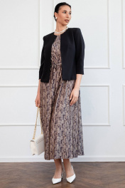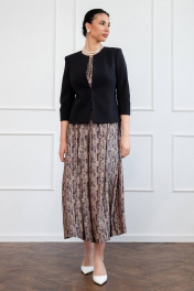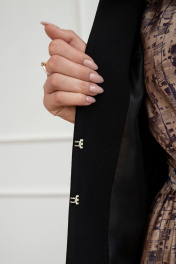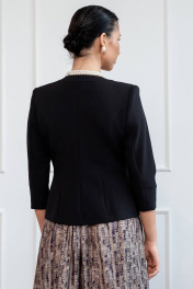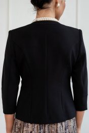 Жакет женский, универсальный, укороченный. Полуприлегающего силуэта с центральной застежкой на два крючка. На передних деталях и деталях спинки есть рельефы. Горловина круглая. Рукава втачные, двухшовные, длина ¾. Жакет частично на подкладке, только по переду, спинка без подкладки. Ткань имеет стрейч, базовый цвет. Жакет смотрится элегантно, современно и отлично подойдет, как для повседневной носки, так и для торжества. Его можно комплектовать с различными юбками, брюками, платьями. Обхват груди: 42 размер-92см,44размер-96см,46размер-100см,48размер-104см,50размер-108см,52размер-112см Обхват талии:42размер-78см, 44размер-82см, 46размер-86см, 48размер-90см, 50размер-94см,52размер-98см Длина изделия:42размер-55см, 44размер-55см, 46размер-55см, 48размер-56см, 50размер-58см,52размер-58см Длина рукава: 44размер-46см, 46размер-46см, 48размер-46см, 50размер-46см,52размер-47см.