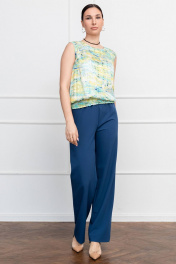 Современная и универсальная блузка без рукавов из приятной вискозы. Свободного силуэта. По низу блузки широкий притачной пояс, собранный на венгерку, который позволяет задать то положение на бедрах и ту степень напуска, которую вам необходимо. Проймы рукава обработаны бейкой из основной ткани. На передних деталях две нагрудные выточки. Вырез горловины круглый. Застежка в виде капельки на спинке. Качественная ткань, не тонкая, мягкая, очень приятная на ощупь. Блузка смотрится стильно и отлично подойдет в летнюю жаркую погоду. Она прекрасно сочетается с брюками, джинсами, классическими юбками карандаш. Обхват груди: 42 размер- 98см, 44размер-102см, 46размер-106см, 48размер-110см, 50размер-114см. Обхват талии: 42размер-100см, 44размер-104см, 46размер-108см, 48размер-112см, 50размер-116см. Длина изделия: 42размер-58см, 44размер-58см, 46размер-59см, 48размер-60см, 50размер-61см. Обхват проймы рукава: 42 размер-42см, 44размер-43см, 46размер-44см, 48размер-48см, 50размер-50см