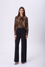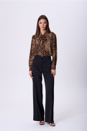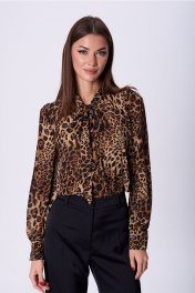Блуза прямого силуэта с воротником-шаль и завязками Lady Line 1577