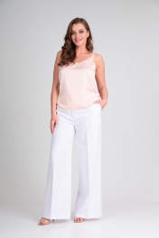 Летние брюки-палаццо с высокой посадкой и карманами Lady Line 507 белый