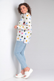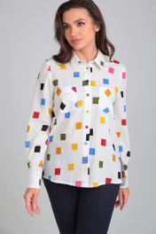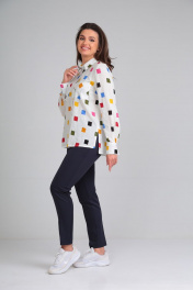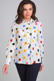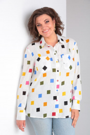 Летняя хлопковая блузка с длинным рукавом и карманами Lady Line 546