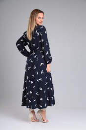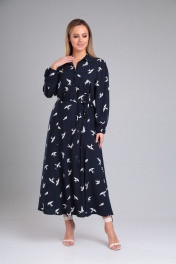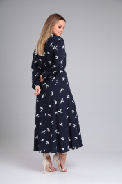 Платье с отлетным воротником и карманами из вискозы Lady Line 563 синий