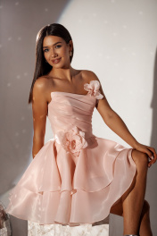 Застежка: молния. Легкое и воздушное платье из восковой органзы. Идеальное решение для выпускного или торжественного мероприятия. Платье с драпированным корсетом. Украшено цветами, которые изготавливаются вручную.