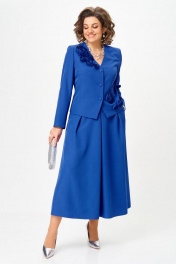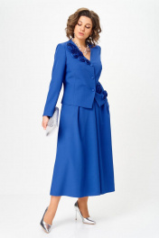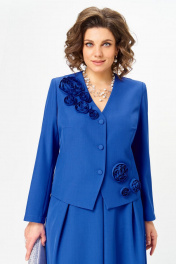 Элегантный юбочный костюм, стильный и универсальный наряд для торжественных и праздничных мероприятий. Обеспечит вашему образу максимум внимания и комплементов , благодаря безупречному подбору цвета и художественному оформлению цветочной аппликации ! Жакет с подкладкой по полочке , полуприлегающего силуэта с v образным вырезом , рукав втачной двух шовный . Юбка без подкладки, на поясе с боковыми резинками, расклешенного силуэта со складками по переду и боковыми карманами .