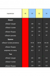 Настоящее произведение искусства!!! Уверенность, элегантность, этого костюма делает его идеальным выбором для важных деловых встреч, корпоративных мероприятий и незабываемых вечерних выходов. Изысканный комплект тройка выполнен из качественной стрейчевой ткани. Топ полуприлегающего силуэта с нагрудными вытачками по полочке и небольшим рукавом. Классические Брюки прямого силуэта на притачном поясе с эластичными лентами по бокам пояса. Средней посадки. С боковыми карманами Застежка молния спереди. Жакет "BLAZER" без застежки на подкладке, рукав втачной расширенный к низу с декоративной шлицей. Изящность комплекту придает контрастная отделка воротника, планок, разреза шлицы и съемного декоративного цветка ручной работы подчеркнет вашу неотразимость и безупречный вкус. Создайте свой уникальный стильный лук и будьте в тренде в одежде от LADY SECRET! Длина жакета-65см Длина рукава жакета-63см Длина брюк-108см Длина топа-60см Длина рукава топа-13см