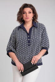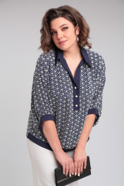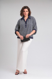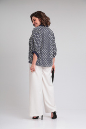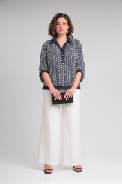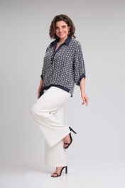 Костюм из белой и синей тканевой блузы и расширенных брюк Lady Secret 2948 молочный+синий