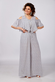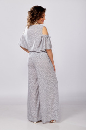 "Уникальный дизайнерский костюм, который станет любимой вещью вашего летнего гардероба. Выполнен из легкой струящейся ткани со стрейчем. Это костюм в котором вы всегда будете себя чувствовать уверенно. В нем легко и комфортно, можно носить куда угодно: на работу, в офис, на свидание, в ресторан, на прогулку. Каждую из вещей этого комплекта, легко можно сочетать с вещами из вашего гардероба. Оголенные плечики и в тоже время закрытые руки, придадут вам легкости и в тоже время элегантности. Брюки свободного силуэта на резинке, что обеспечит вам максимальный комфорт в легкость в ваших движениях. Отличительные черты – приятная и очень легкая ткань, модный принт. Данный костюм будет лучшим приобретением на летний сезон."