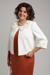 Деловой костюм жакет и платье из текстиля с отделкой цветов Lady Secret 3740/1 молочный+терракот