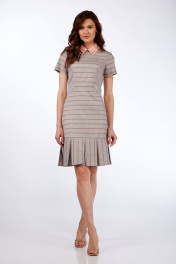 Серое деловое платье из текстиля с рельефными швами Lady Style Classic 1274 розовый с серым