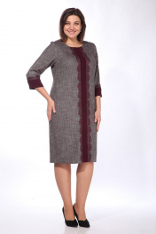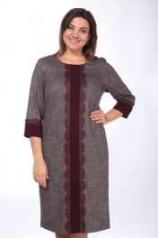 Платье с кружевом и рукавами 3/4 для делового образа Lady Style Classic 1509 бордовый_с_серым