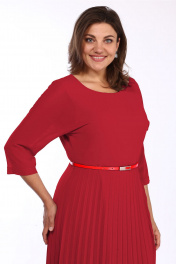 Платье женское, нарядное от Леди - стиль классик, из текстильного материала. Платье А- силуэта с круглым вырезом горловины, отрезное по линии талии. Потайная тесьма "молния" в левом боковом шве. Платье на текстильной подкладке. Рукава цельнокроеные, длиной 3/4. Комплектуется съемным поясом.