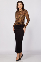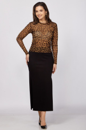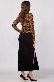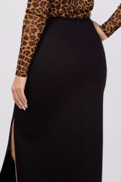 Стильная юбка длиной макси из плотного трикотажного полотна. Облегающая модель с высоким разрезом делает образ игривым и привлекательным. Верх юбки зафиксирован отделочной тесьмой, по спинке от талии расположены талиевые вытачки. Боковые швы смещены на переднюю часть юбки и переходят в фигурные подрезы, в которых выполнены высокие разрезы. Задняя половина юбки со средним швом, в который вставлена застежка на тесьму-молнию. Длина изделия по спинке 91 см. Элегантный образ для торжественного мероприятия. На фото юбка с нашим джемпером 2419, также юбку можно приобрести в составе комплекта 2447 (на фото).