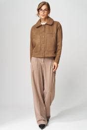 Жакет от LAIKONY свободного силуэта из экозамши. Воротник съемный с отрезной стойкой с обтачкой, на которой расположена застежка на 10 потайных петель и пуговиц. На верхнем воротнике - декоративная вышивка. Застежка центральная на 6 кнопок. Перед с рельефными швами и накладными карманами с листочками. На боковой части переда внизу от бокового шва расположены горизонтальные вытачки. Спинка с кокеткой. Рукава втачные двухшовные, с притачными манжетами. Верхняя часть рукавов с горизонтальным подрезом. Линия плеча спущена. Жакет на подкладке. Декор может отличаться от представленного на фотографии. Длина изделия по спинке 54-58 см в зависимости от размера, длина рукава 55 см от шва втачивания. Наш стильный жакет заменит вам куртку теплой солнечной осенью и весной. Будет отлично смотреться с нашими шоколадными брюками L-942-2.